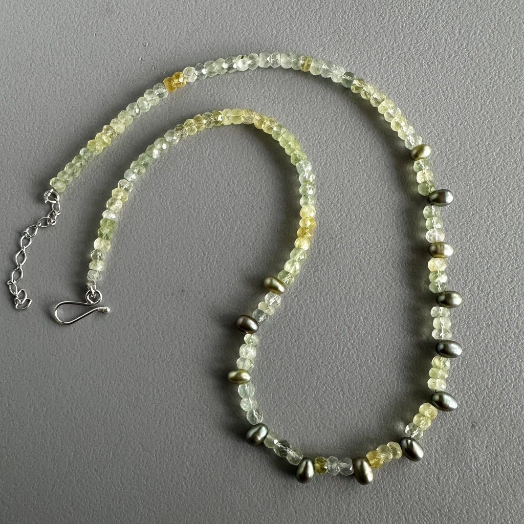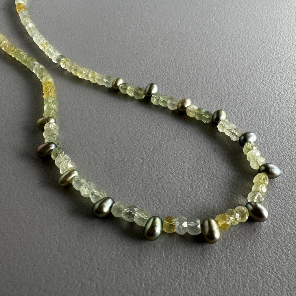 Prehnite + Peacock Pearls Necklace (17.5”)
