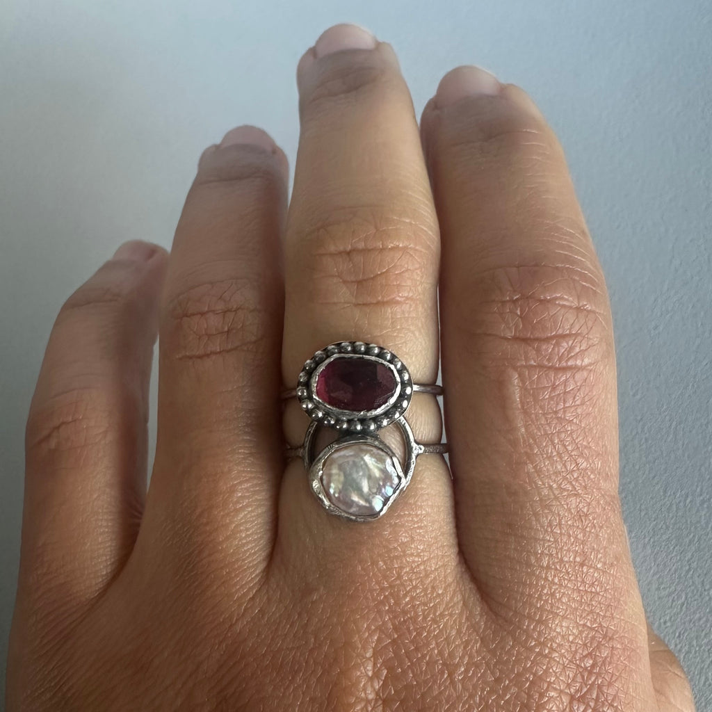 Garnet + Pearl Ring