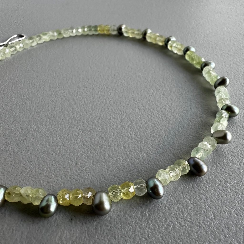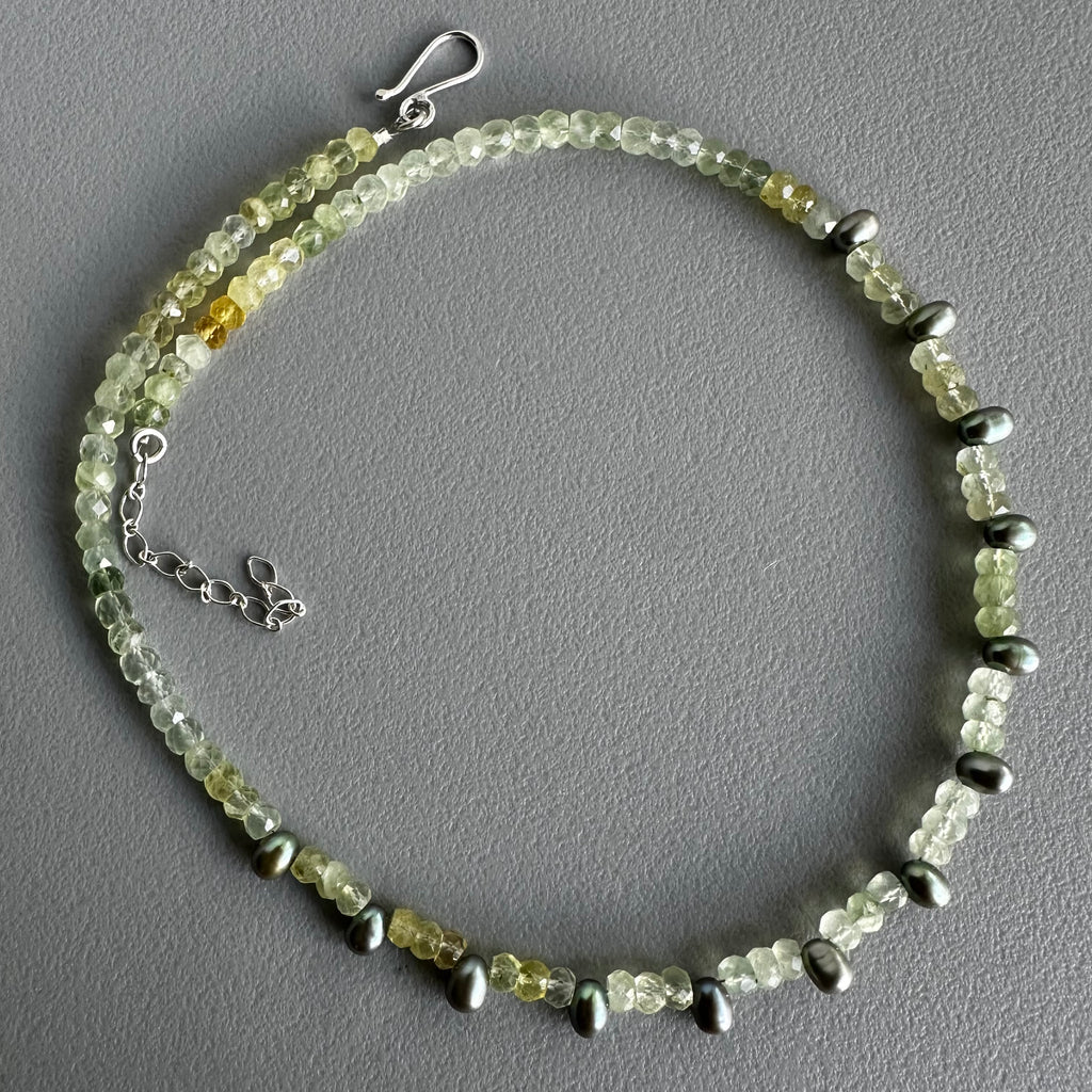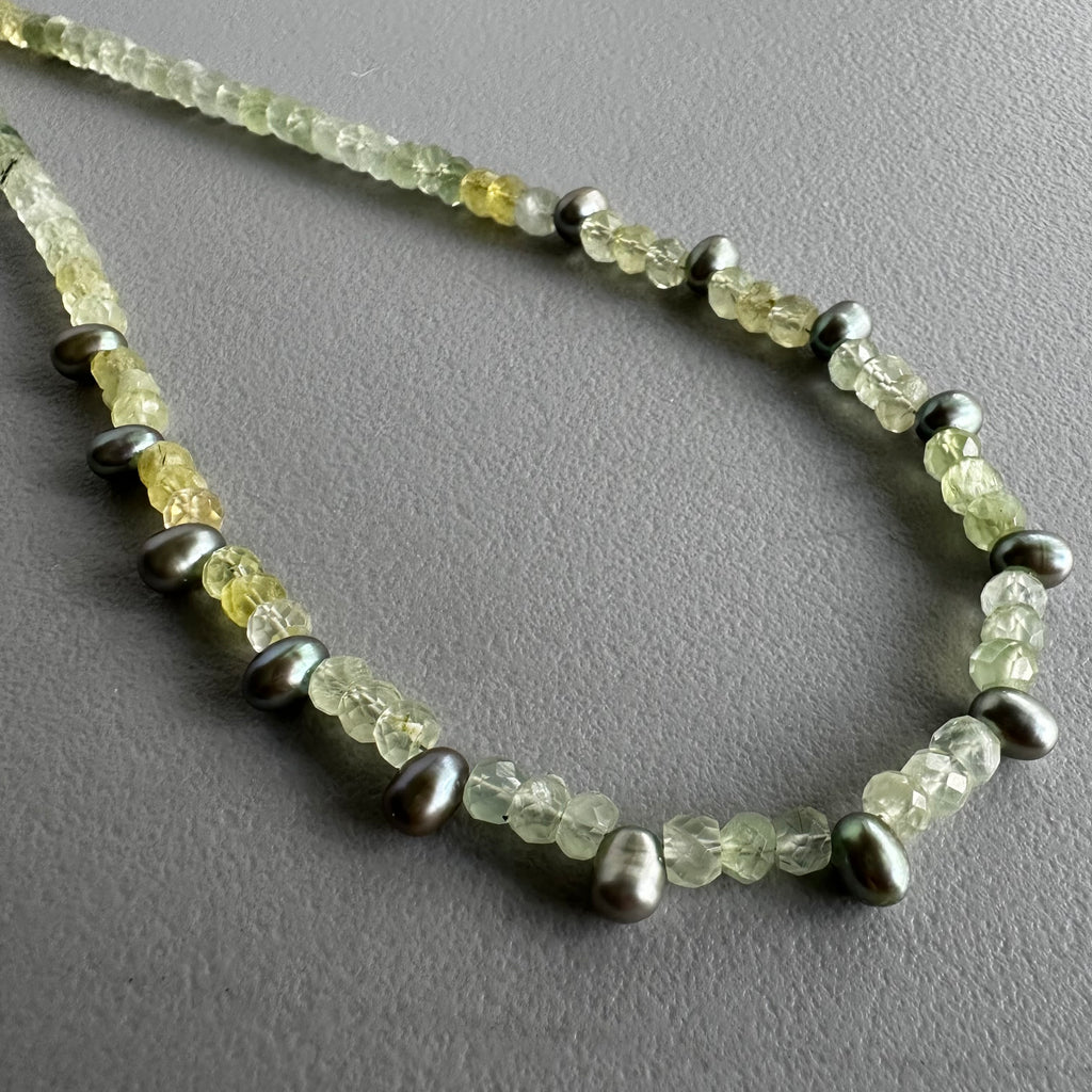Prehnite + Peacock Pearls Necklace (15.5”)